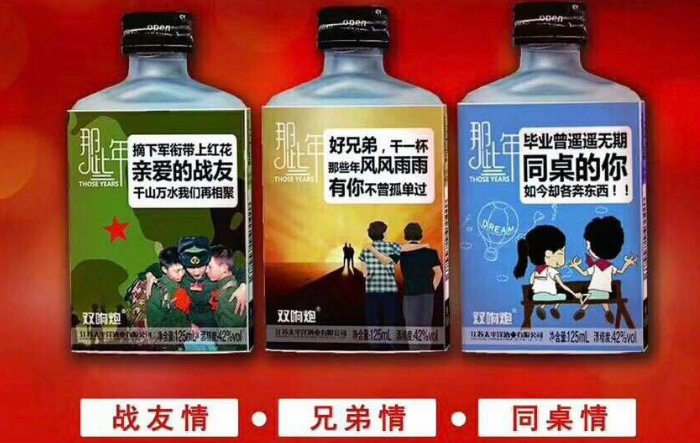 亮點(diǎn)十足的那些年小白酒,擁有更多的優(yōu)勢,多種主題意義非凡。那些年小白酒采用純糧食發(fā)酵釀造,打造口味與情感定位相一致的小酒品牌,天下水坊“那些年”推出兄弟款、戰(zhàn)友款、同桌款系列主題,產(chǎn)品圍繞同學(xué)、兄弟、戰(zhàn)友的那些年、那些人、那些事、那些青春的回憶為主題,創(chuàng)造出產(chǎn)品不同的消費(fèi)場景,在小眾人群形成了強(qiáng)大的品牌張力,并在各地都沉淀有一批又一批的忠誠粉絲。白酒加盟很多人都會(huì)對(duì)此產(chǎn)生了好感,在消費(fèi)者眼中,那些年小白酒具有更多的人氣,創(chuàng)業(yè)致富有思路,自然前景無限好。那些年情懷小酒是一款圍繞情懷路線的新概念小酒,產(chǎn)品包裝新穎而且富有層次感,既能迎合現(xiàn)在80、90年輕一代的消費(fèi)者的審美,又能滿足70后富有情懷的人群對(duì)年輕時(shí)光的追憶。