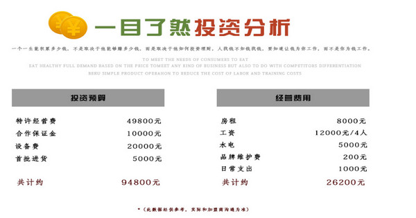 城品潤幾乎涵蓋市面所有早中晚餐產(chǎn)品,是武漢優(yōu)先采用個性定制模式,根據(jù)加盟商門店市場環(huán)境,進行市場分析,設計出最適合門店市場的產(chǎn)品組合的品牌合作方,真正做到品牌市場營業(yè)額最大化,保證合作方利益。